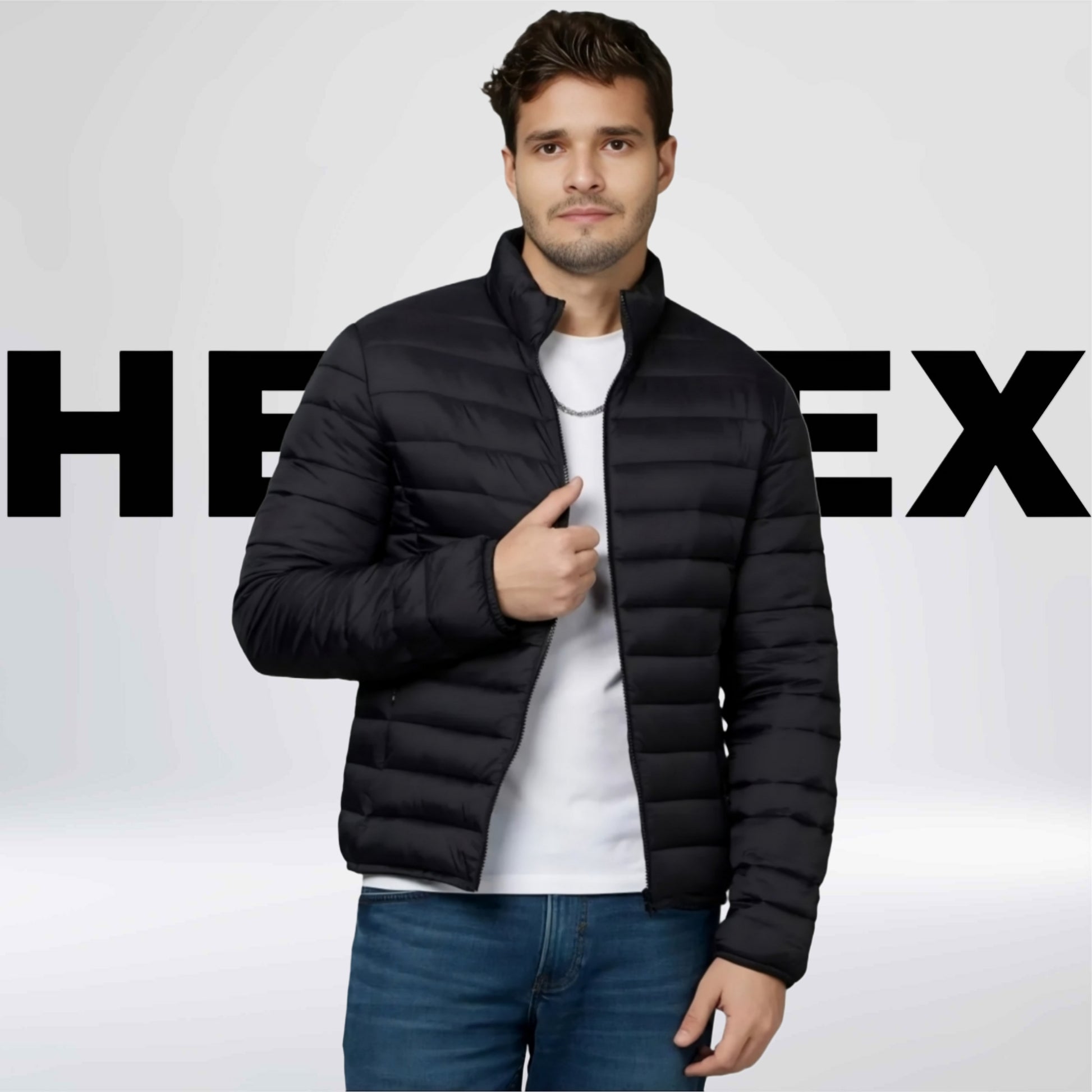 HEFNEX Black Men's Lightweight Quilted Puffer Jacket with a Sleek Design and Warm Insulation