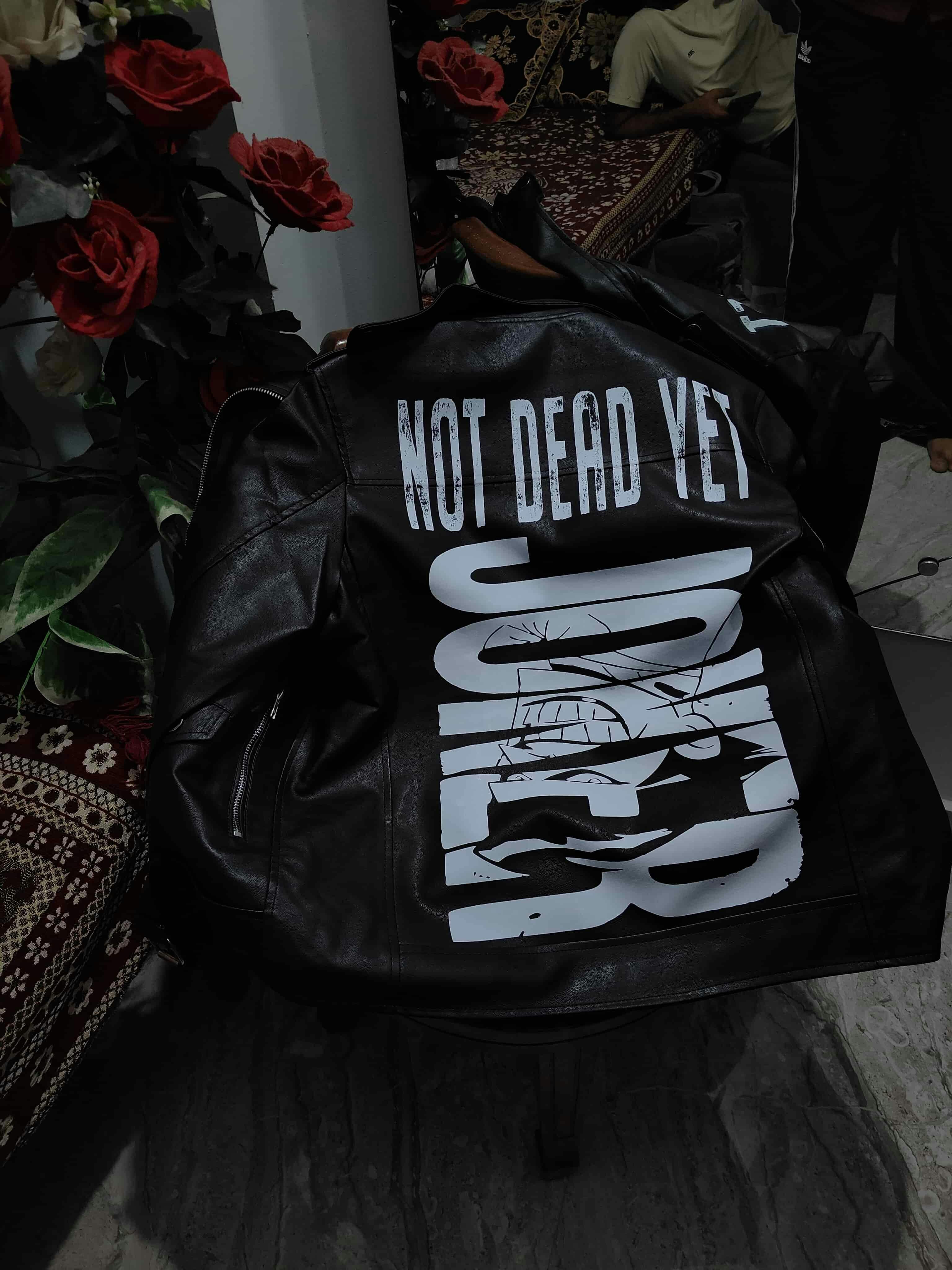 Step into fearless style with the HEFNEX “NOT DEAD YET – The Joker Edition” Leather Jacket. Crafted from premium-grade leather, this jacket embodies rebellion, confidence, and attitude. The bold “NOT DEAD YET” statement on the back, paired with the striking “JOKER” print, gives it an edgy streetwear vibe that stands out wherever you go.