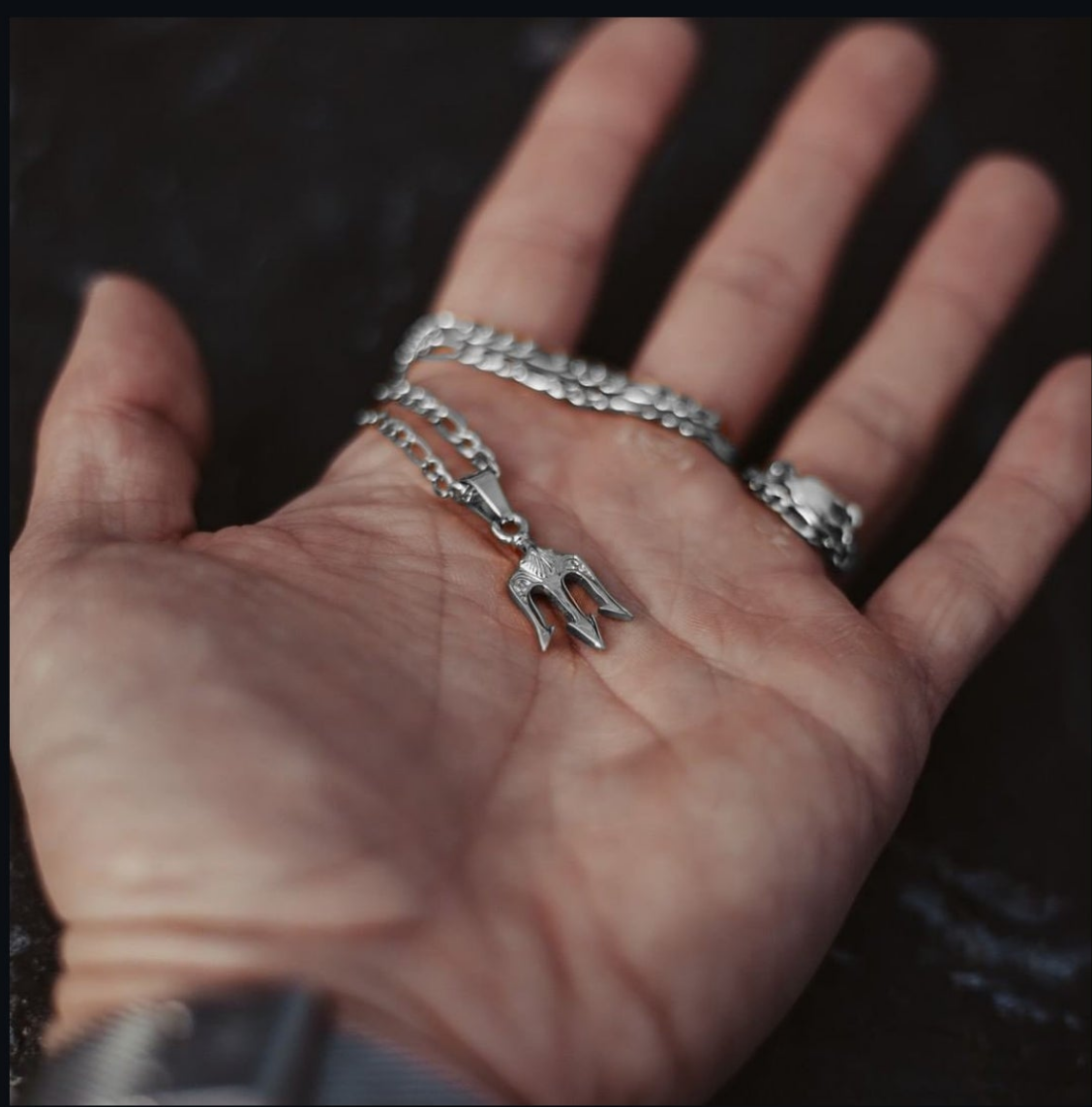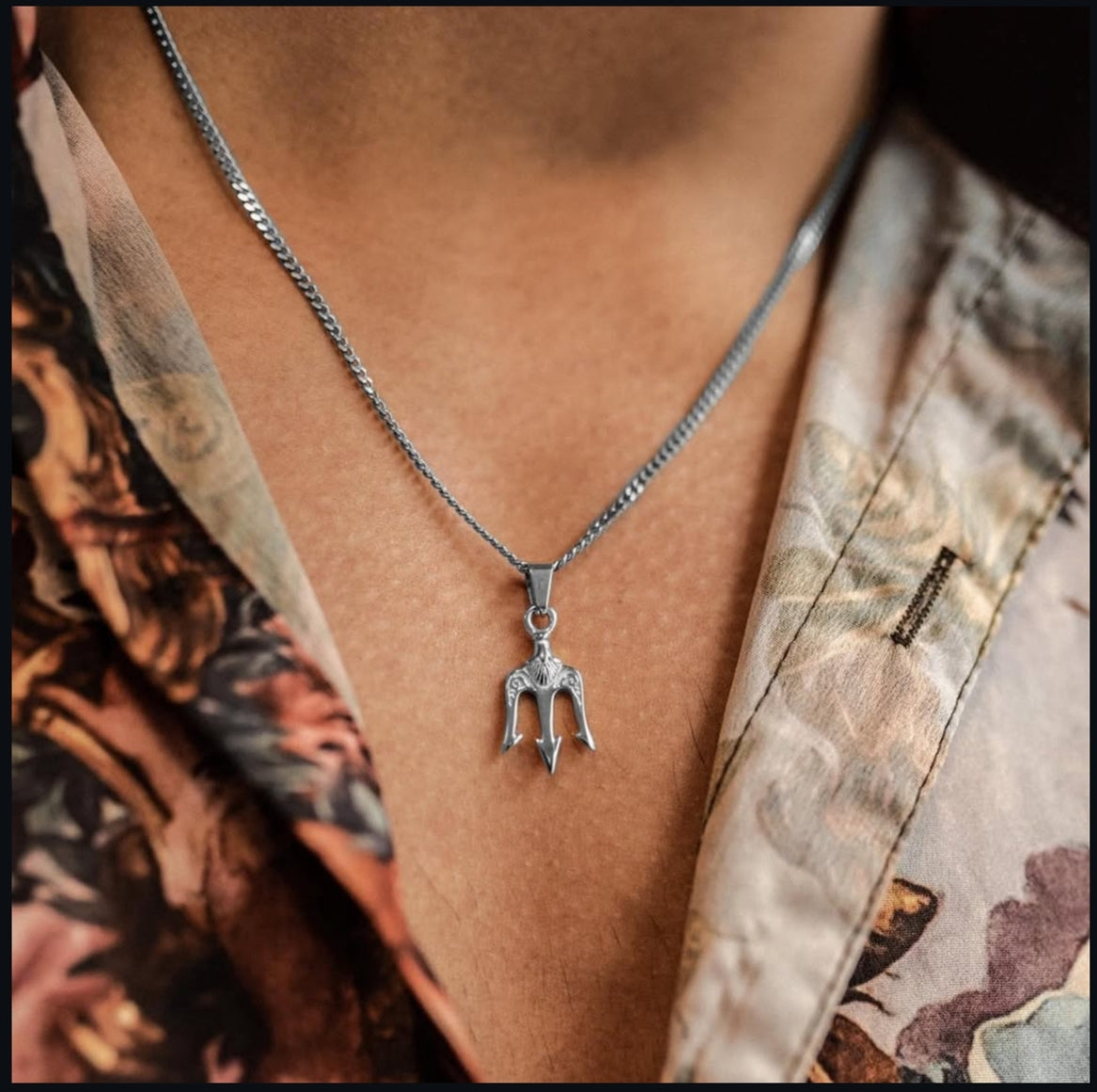 Unleash your inner strength with the HEFNEX | Trident of Silent Storms Pendant – a bold expression of timeless power and raw identity. Forged in polished silver-toned metal, this pendant features a three-pronged design inspired by the trident — a symbol of courage, defiance, and divine energy. Each edge is carved with intricate detailing, echoing ancient strength and modern minimalism.
