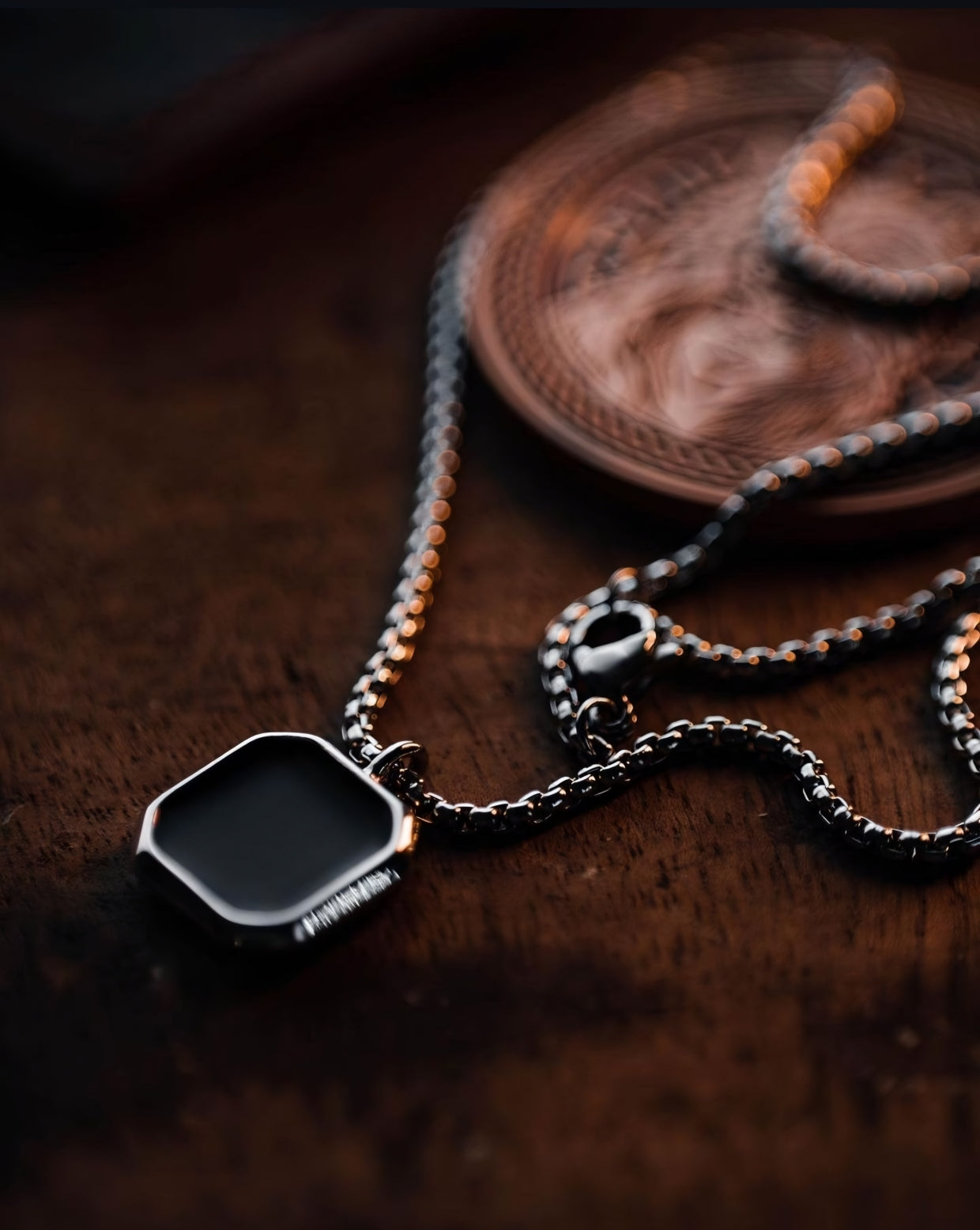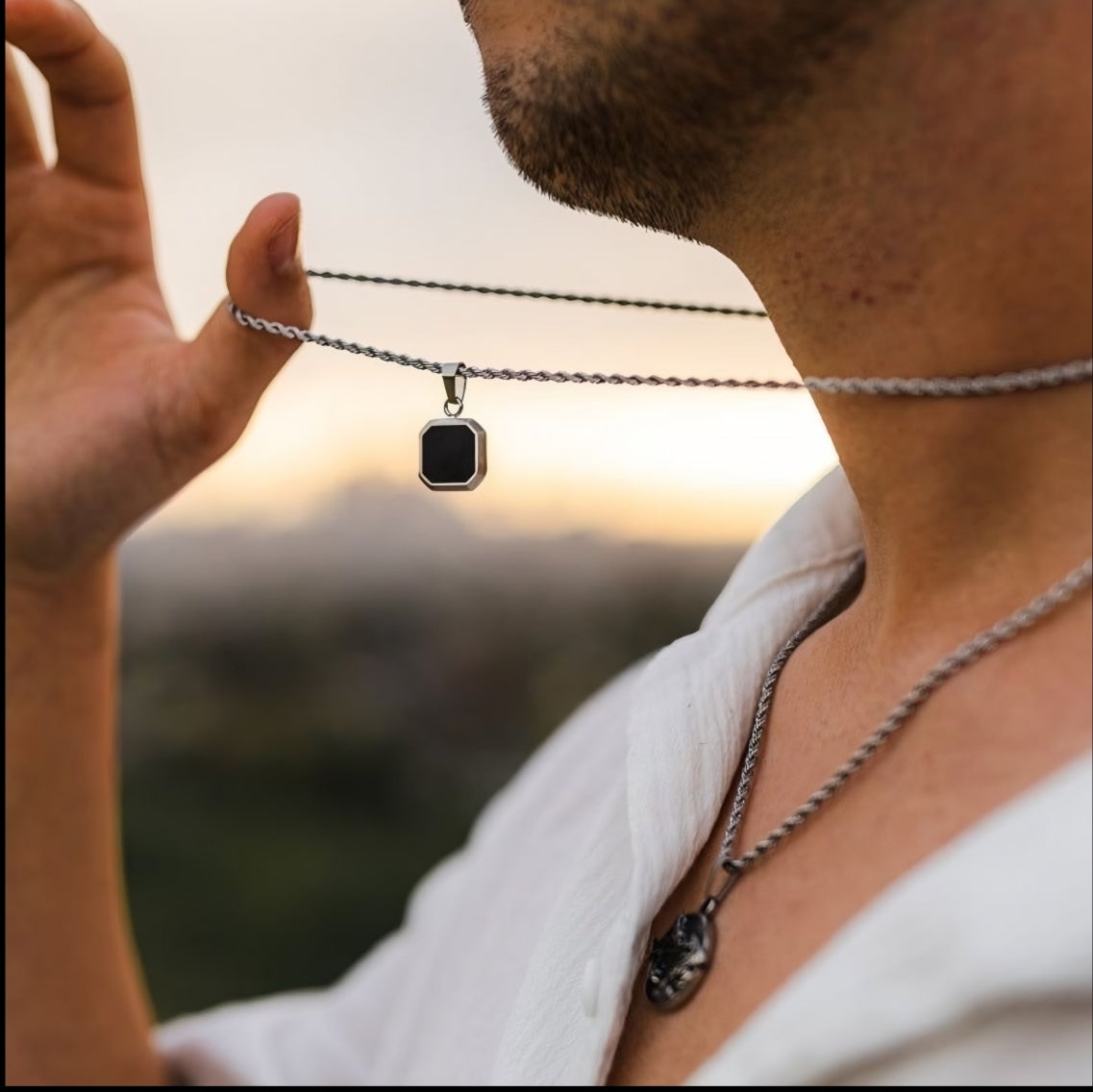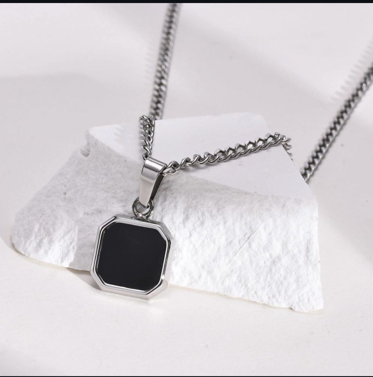 Elevate your everyday style with the HEFNEX Noir Edge Onyx Pendant. This sleek and modern piece features a bold octagonal black onyx centerpiece, framed in polished stainless steel for a refined contrast. Suspended from a high-shine curb chain, the pendant offers a minimal yet striking aesthetic that pairs effortlessly with both casual and formal wear. Whether worn solo or layered, this pendant makes a powerful statement of sophistication and strength. Crafted with premium materials, it's designed for long-lasting shine and comfort.