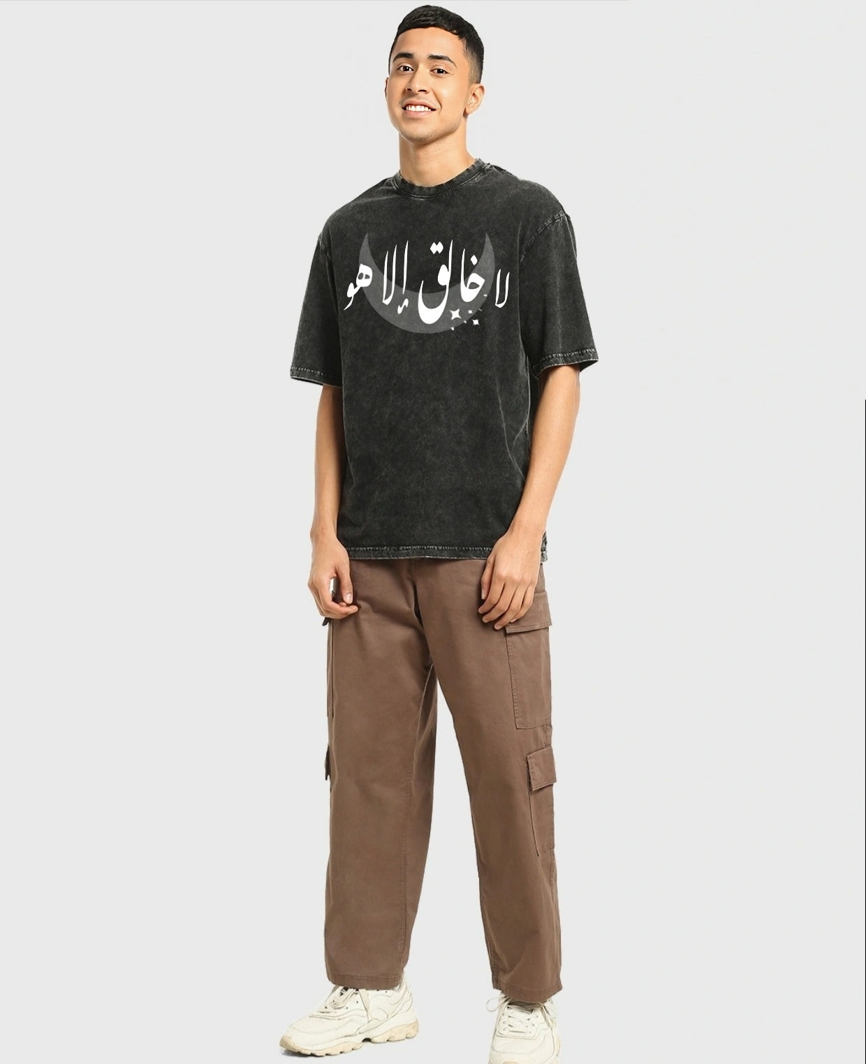 Make a powerful statement with the HEFNEX "No Creator Except Him" T-shirt – a bold fusion of Arabic calligraphy and minimalist streetwear. Designed in deep black with celestial white text, this piece reflects deep belief and effortless style. Whether for faith, fashion, or both – this tee speaks louder than words.